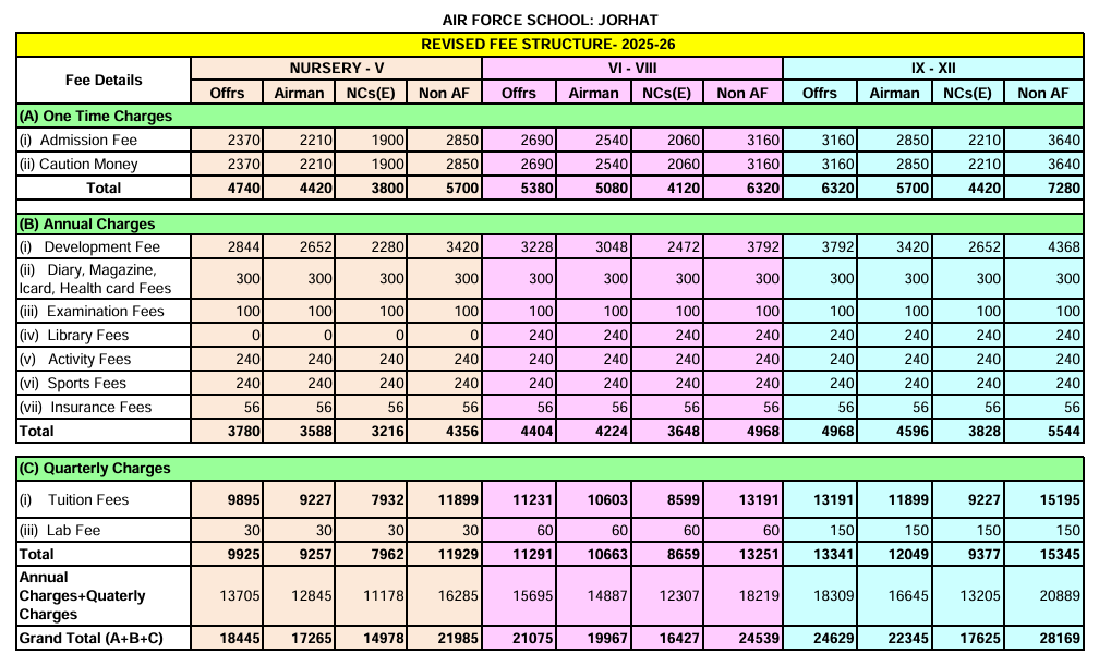 - Fee should be paid online to the State Bank of India, Rowriah Branch, Jorhat between 1st to 10th of the first month of every quarter i.e. April, July, October and January. Incase of non payment of fee by due date, late fee @ Rs.20/- per day(including holidays) will be charged for ten days after the last date of payment. Thereafter Rs.50/- per day (including holidays) are to be charged for next twenty days .